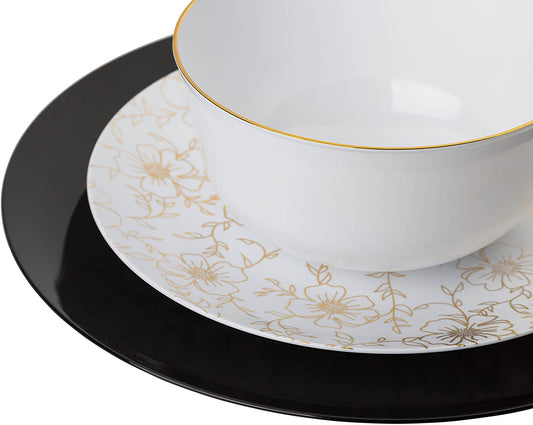 14 Oz. Round Black • Gold Plastic Bowls | 10 Bowls