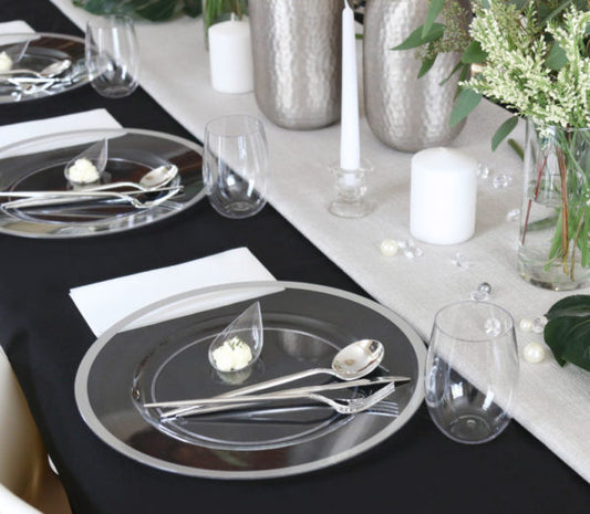 Silver Rim Clear Plastic Chargers 13″ 4 ct